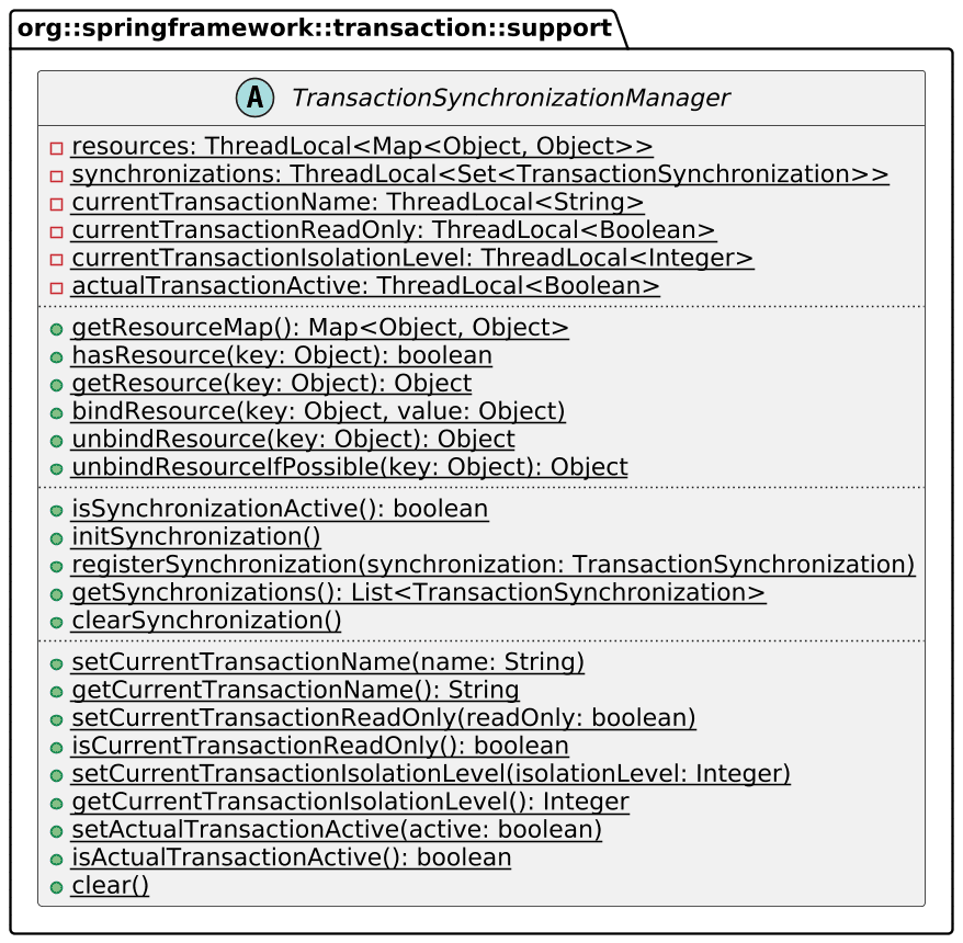 ), it checks the current thread’s context for any existing transaction usingTransactionSynchronizationManager