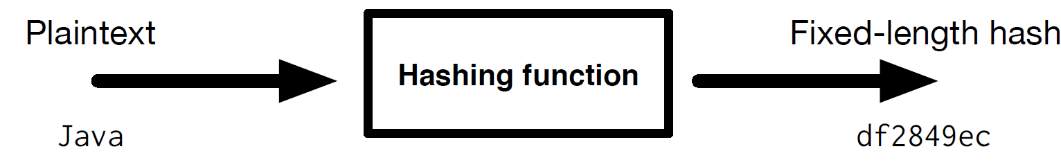 Een hashingfunctie is stabiel (zelfde input levert zelfde output) en onvoorspelbaar. Elke wijziging in de plaintext heeft een onvoorspelbare wijziging in de hash tot gevolg. Vanuit een gegeven hash is het lastig (“infeasible,” zoals cryptografen dat noemen) om de plaintext te achterhalen.