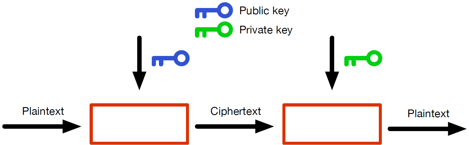 Met een keypair bestaande uit twee keys, eentje voor encryptie en eentje voor decryptie, kunnen we asymmetrische encryptie bereiken. Eén van de sleutels is public, en de andere is private. Dit mechanisme voorkomt het vooraf uitwisselen van keys en komt daarom veel voor in praktische cryptosystemen. Certificaten voor websites, PGP email-encryptie, maar bijvoorbeeld ook de chip in je bankpas zijn allemaal gebaseerd op asymmetrische encryptie.