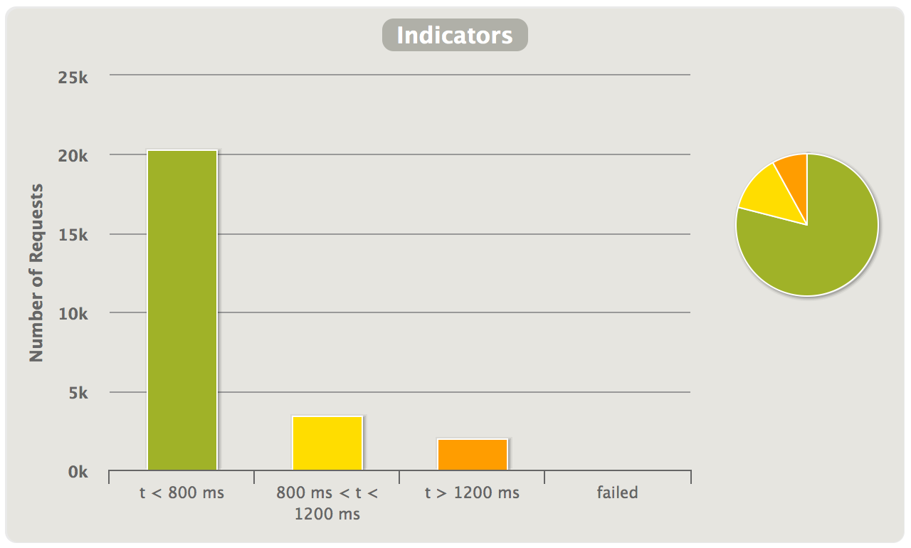 De resultaten van de test worden in Jenkins opgeslagen door een Gatling-plugin. Gatling genereert een uitgebreide interactieve rapportage (zie afbeeldingen) met de details voor een test. De Gatling-plugin genereert ook een grafiek met de gemiddelde responstijd per test, zodat je over de laatste 15 tests het verloop van de responstijden kunt zien. Als je elke dag een test draait, zie je daarmee in één oogopslag hoe de trend van responstijden van je applicatie over de afgelopen twee weken is verlopen. Dit blijkt een erg waardevolle feature, want hiermee hebben we al meerdere potentiële performance-issues ontdekt en kunnen verhelpen.