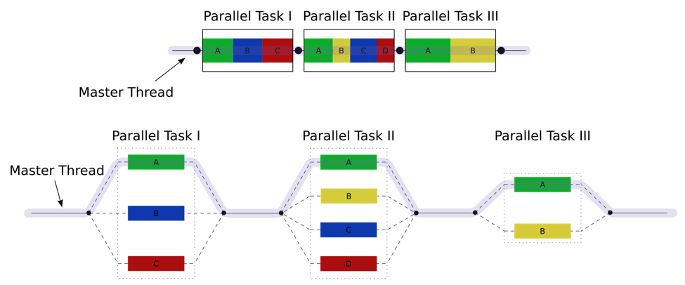 Dit model houdt in dat het werk verdeeld wordt in ‘werkpakketjes’, die uitgezet worden over een aantal threads. Als deze threads voor een bepaalde tijd aan het pakketje gewerkt hebben, wordt de tussenstand verzameld en samengevoegd door de master thread. Daarna wordt dit werk wederom uitgezet, verwerkt, verzameld en samengevoegd. Onze implementatie werkt op dezelfde manier, maar in iteraties: