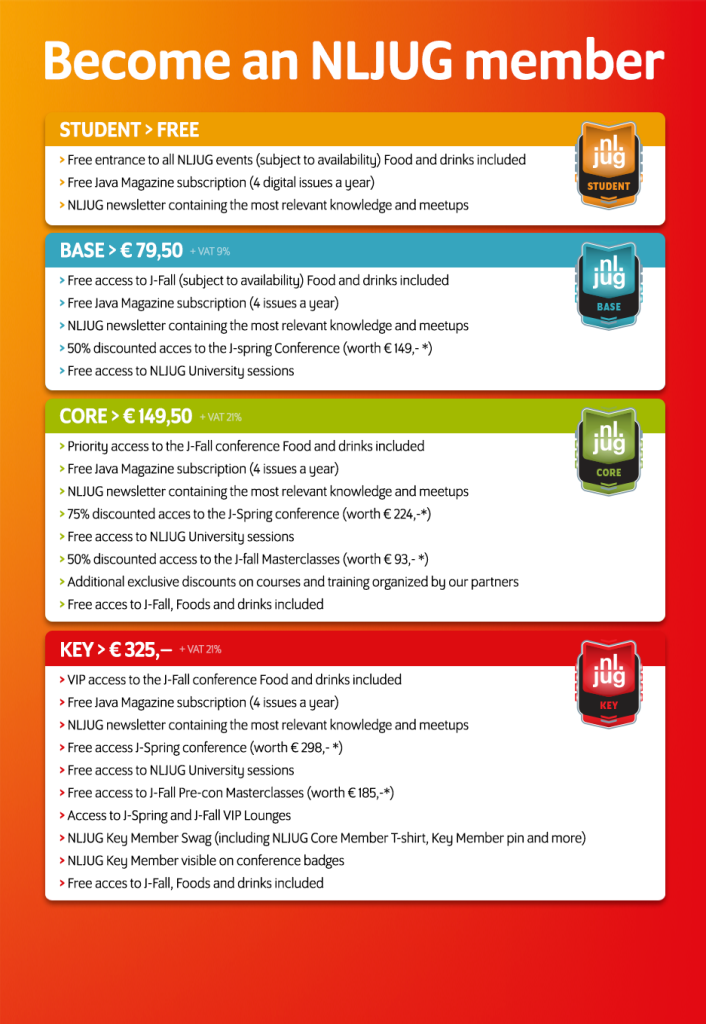 Discover the perfect NLJUG membership tier for you and take full advantage of what our community has to offer!