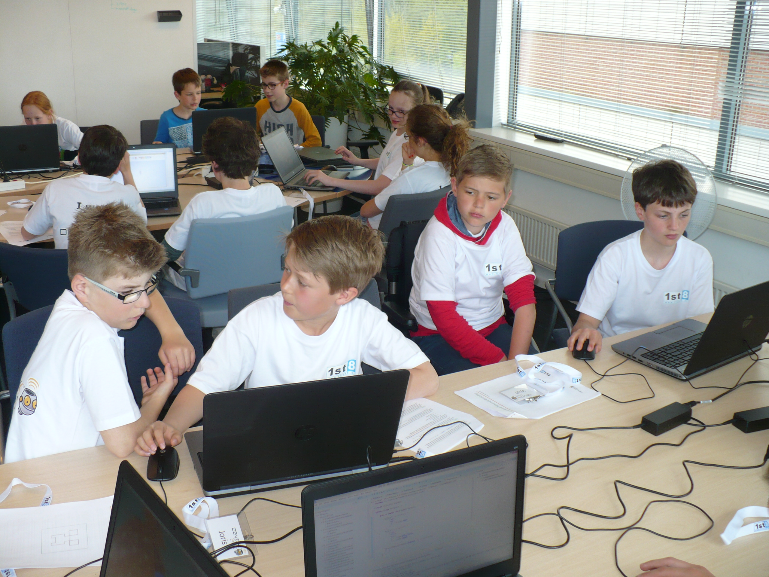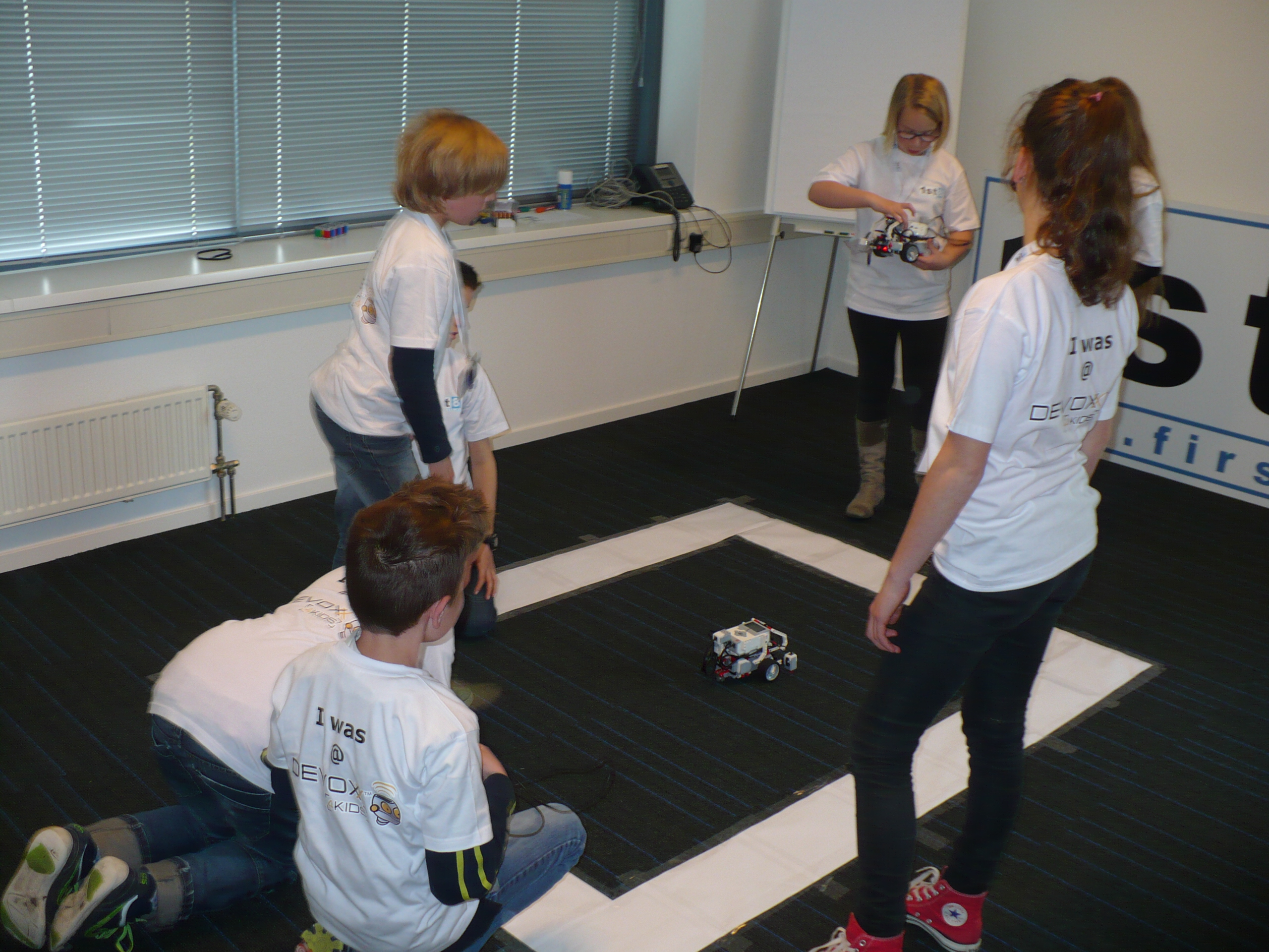 Groep 1 begon met Minecraft en groep 2 met Greenfoot. In tweetallen gingen ze aan de slag. Al snel vlogen de creepy eieren in het rond en werden er mods gemaakt. Na de lunch wisselden de groepen en kwam ook LEGO Mindstorms aan de beurt. De kids programmeerden opdrachten in het voertuig: dat moest bijvoorbeeld omdraaien zodra hij de witte streep aanraakte.